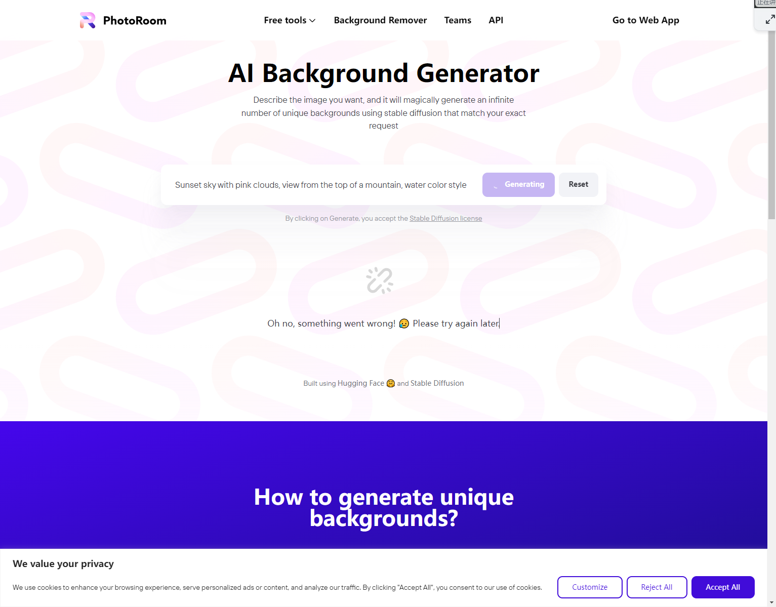 photoRoom 在这个网站内,根据提供的关键字产生背景。